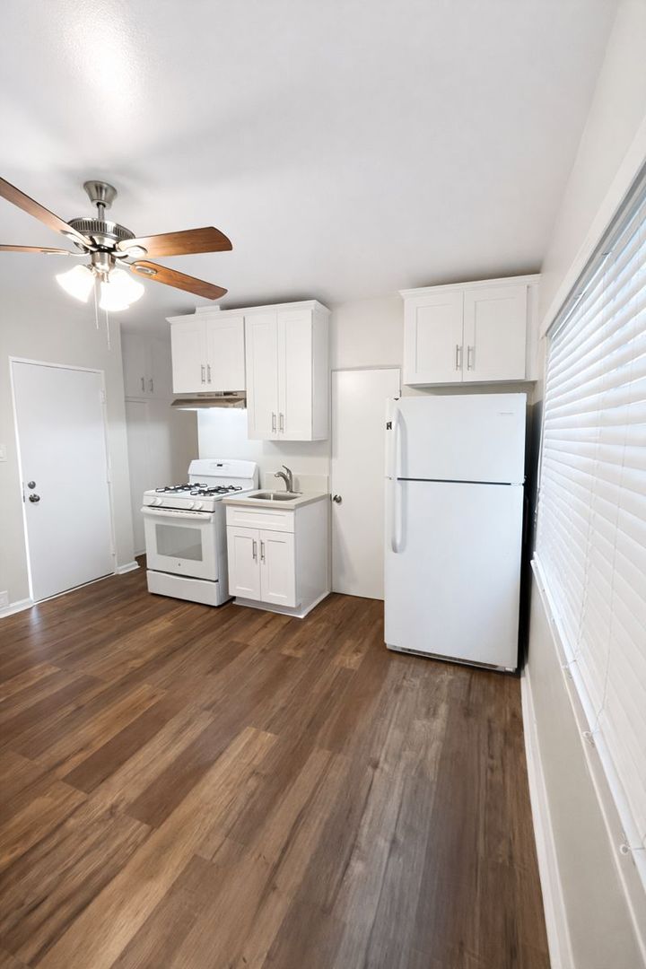 Welcome to your new home in Long Beach, CA! This cat-friendly studio apartment, complete with one bathroom, is located on the ground floor for easy access. The apartment boasts a range of amenities including onsite laundry facilities, a fridge, a new ceiling fan, blinds, and vinyl click flooring. The kitchen is equipped with a gas stove, perfect for cooking up a storm. The apartment has been recently updated with new windows throughout and a fresh, full two-toned paint job. The bathroom features a reglazed shower, adding a touch of modern elegance. Cats are welcomed with a pet deposit of $300 and a monthly pet rent of $35. Experience the convenience and comfort of living in this well-appointed studio apartment in the heart of Long Beach.