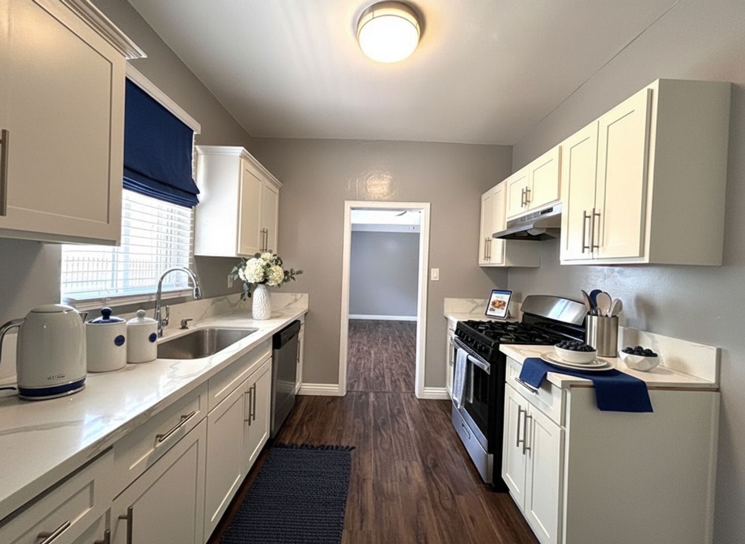 Experience the epitome of coastal living in this stunning 3-bedroom, 1-bath apartment located in the vibrant city of Long Beach, CA. This downstairs unit is beautifully appointed with modern amenities including a gas stove, dishwasher, and ceiling fans. The kitchen is a chef's dream with quartz countertops and ample storage space. The apartment also features vinyl click flooring and fresh, full two-toned paint throughout, adding a touch of elegance to the space. For your convenience, the unit is equipped with washer and dryer hookups. The apartment also comes with an electric wall heater for those cooler California nights. For those who require additional storage or parking, a detached garage is available for an additional $100 per month. Enjoy the best of Long Beach living in this stylish and comfortable apartment.