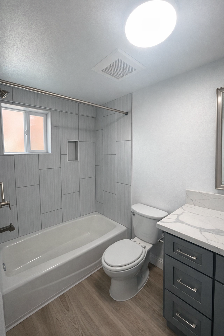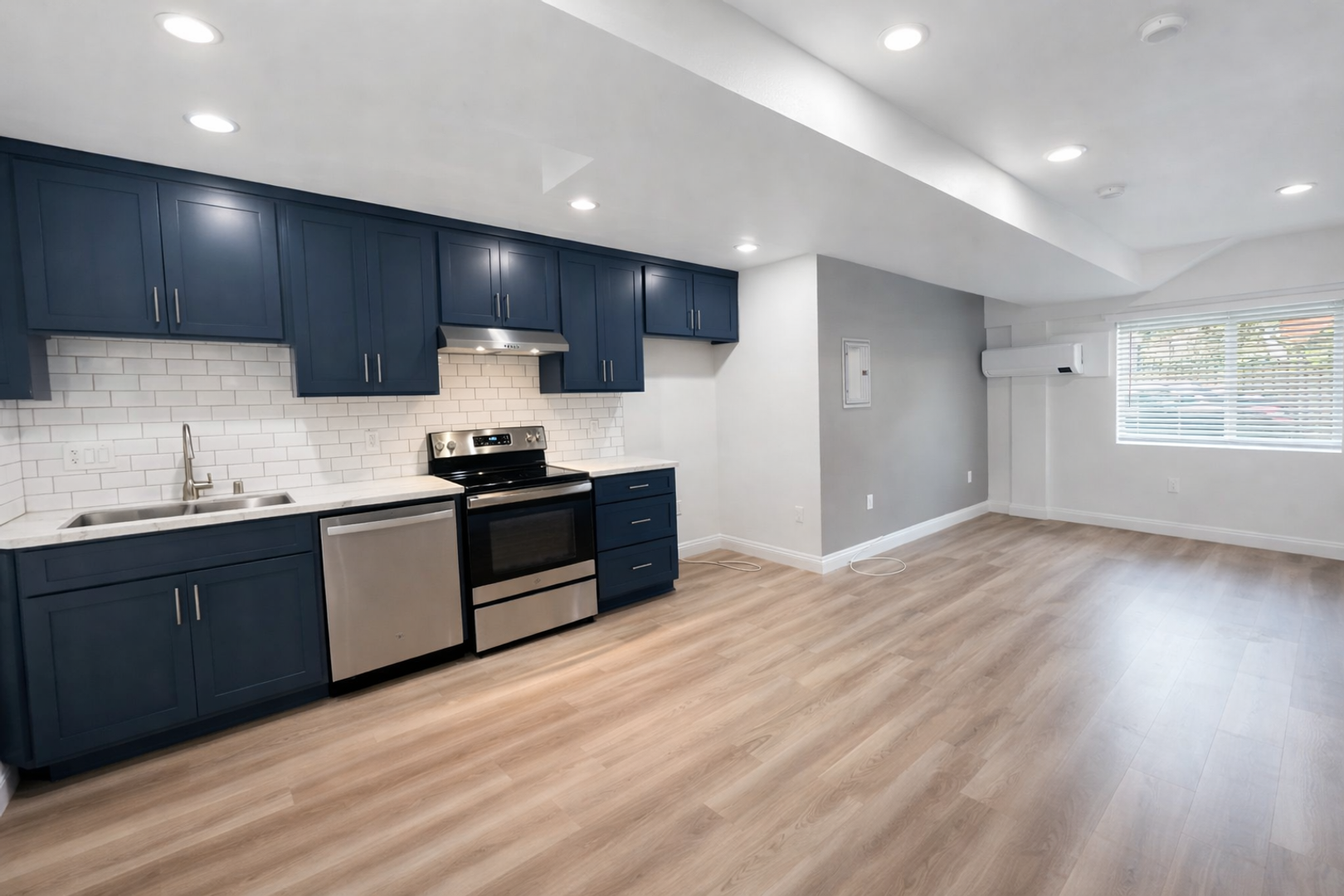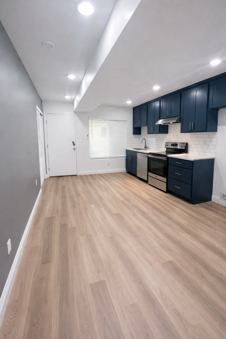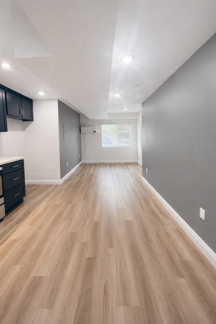 Discover this newer downstairs studio in Long Beach offering a fresh, move-in ready space The unit features vinyl click flooring, touch up paint, quartz countertops, bath vanity and tub, a spacious closet, 2" faux wood blinds and window screens. Kitchen amenities include an electric stove, new fridge and dishwasher. Comfort is provided by a mini split AC/heat system. Onsite conveniences include a gated building, onsite manager and onsite laundry; street parking is available. Pets under 25 lbs are welcome with a $350 deposit and $50 monthly pet rent. No smoking.