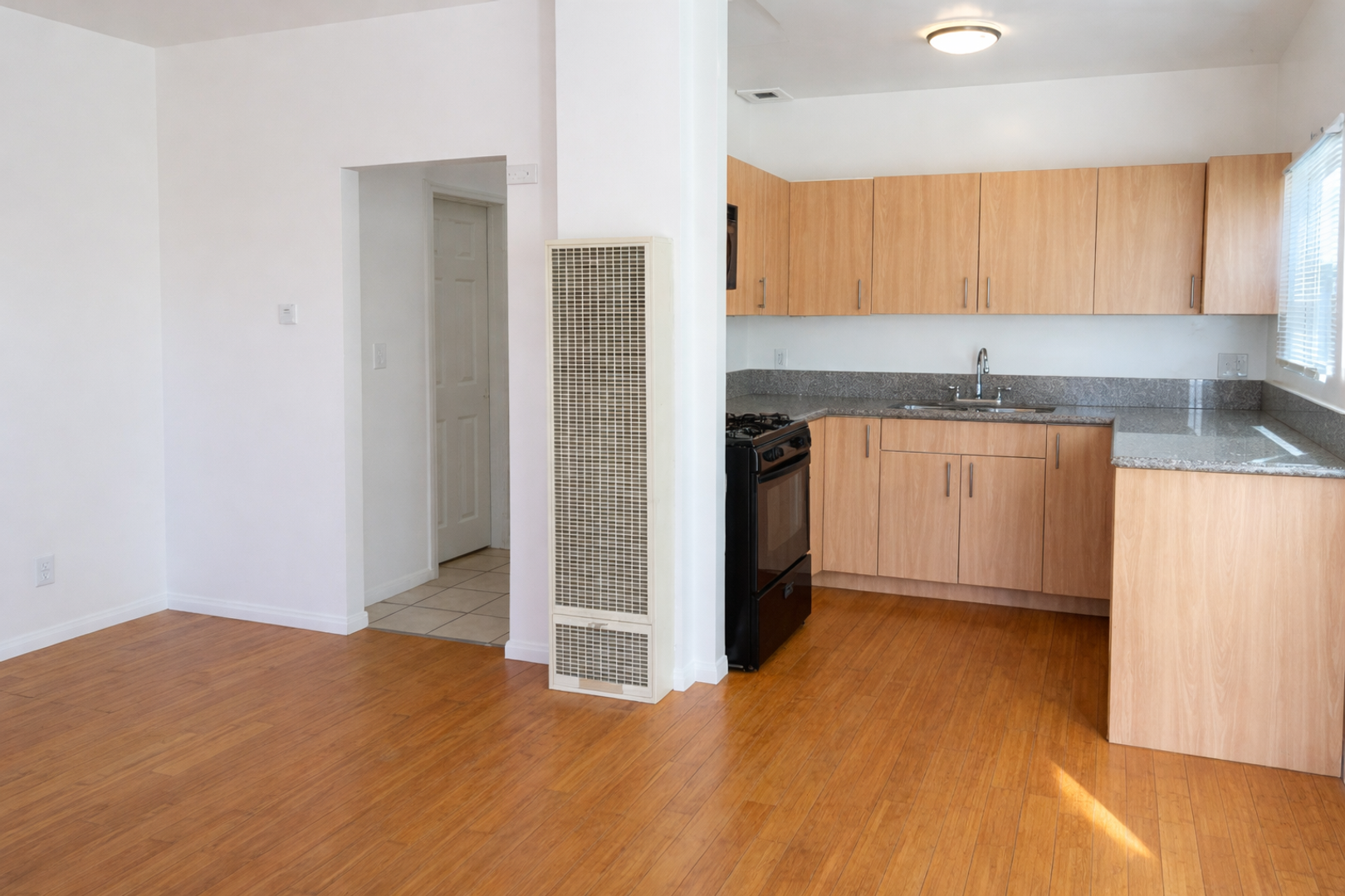 Discover this charming studio in downtown Santa Ana offering an efficient, well-maintained living space with all utilities included. The upstairs unit features wood flooring throughout, a gas stove, granite countertops and a microwave, plus a refrigerator provided as-is. Interior updates include fresh paint, blinds/window screens and a reglazed tub with ceramic bathroom flooring. The gated building includes on-site laundry and an on-site manager. Additional details: gas wall heater, street parking only, no smoking and no pets.