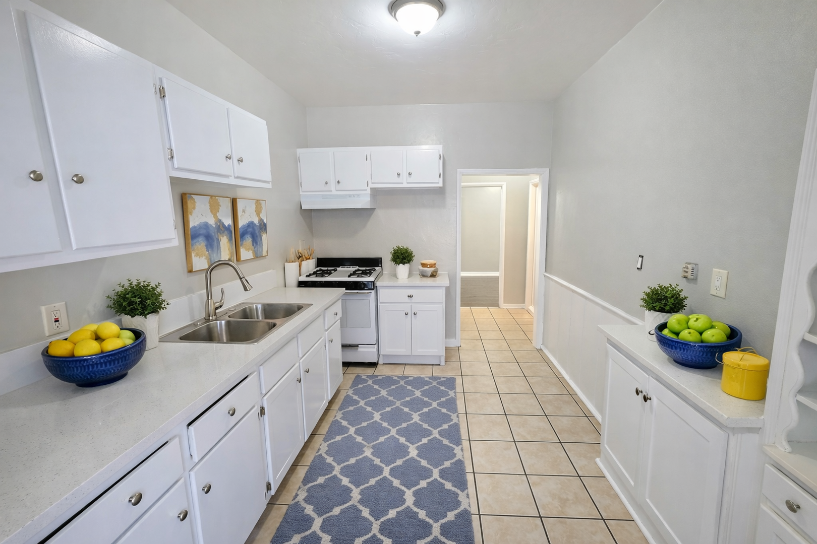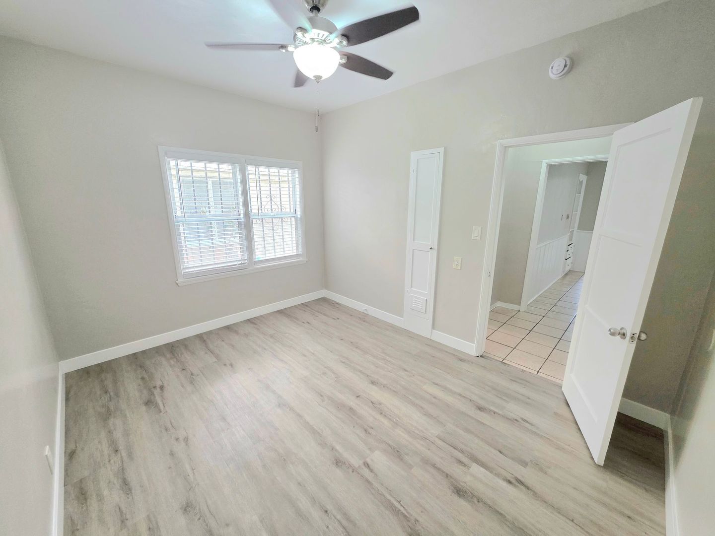 Experience the comfort and convenience of living in this gorgeous 2-bedroom, 1-bath apartment located in the vibrant city of Long Beach, CA. This extra-large, downstairs unit is situated within a gated building, ensuring your peace of mind. The apartment boasts a range of modern amenities including a gas stove, ceiling fans, and a gas wall heater. The kitchen is a chef's dream with quartz countertops and ample cabinet space, complemented by ceramic flooring. The bathroom features a bath vanity and tub, also with ceramic flooring. The living room and bedrooms are fitted with stylish vinyl click flooring, adding a touch of elegance to the space. The apartment also comes with blinds and window screens for added privacy and comfort. For your convenience, there is an onsite laundry facility. This apartment is perfect for those seeking a spacious and modern living environment in the heart of Long Beach.