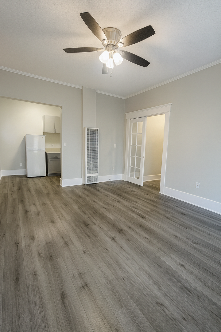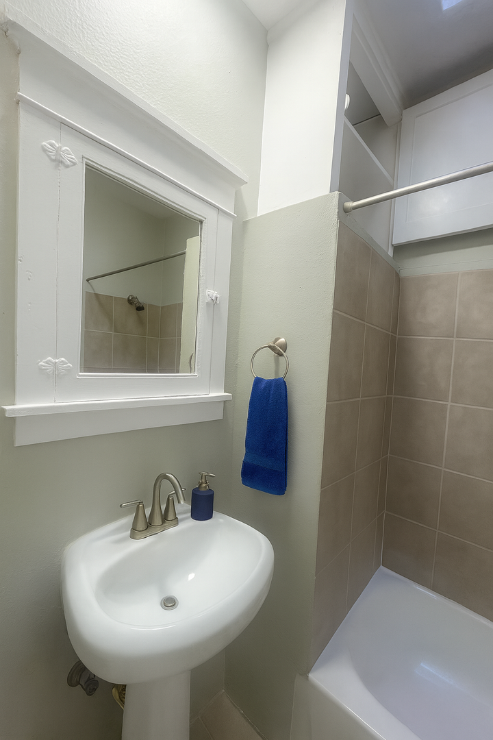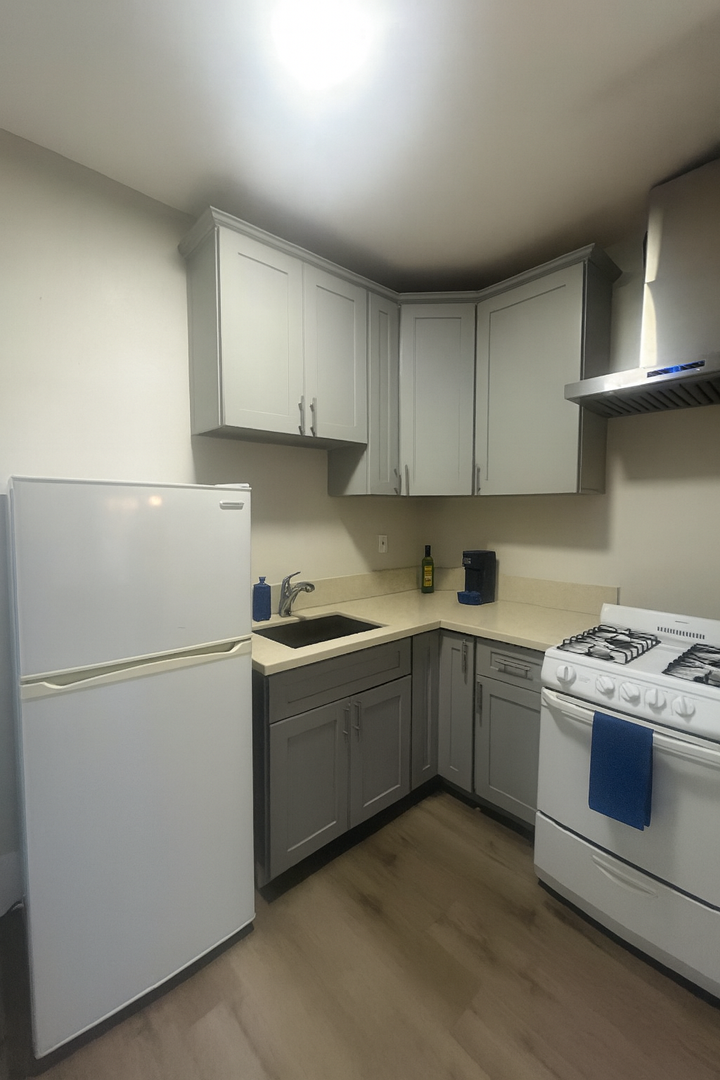 Welcome to this inviting upstairs studio in Santa Ana, offering comfort, convenience, and style! Located in a gated building with an onsite manager, this bright studio features a spacious closet, freshly painted two-tone walls, and a reglazed tub for a fresh, modern feel. Enjoy cooking in your kitchen with a gas stove, microwave (as-is), fridge (as-is), and sleek granite countertops. The unit also includes vinyl click flooring, blinds and window screens, a ceiling fan, and a gas wall heater to keep you comfortable year-round. Onsite laundry facilities make chores easy and convenient. Don’t miss the opportunity to live in this well‑maintained community with everything you need close by!
