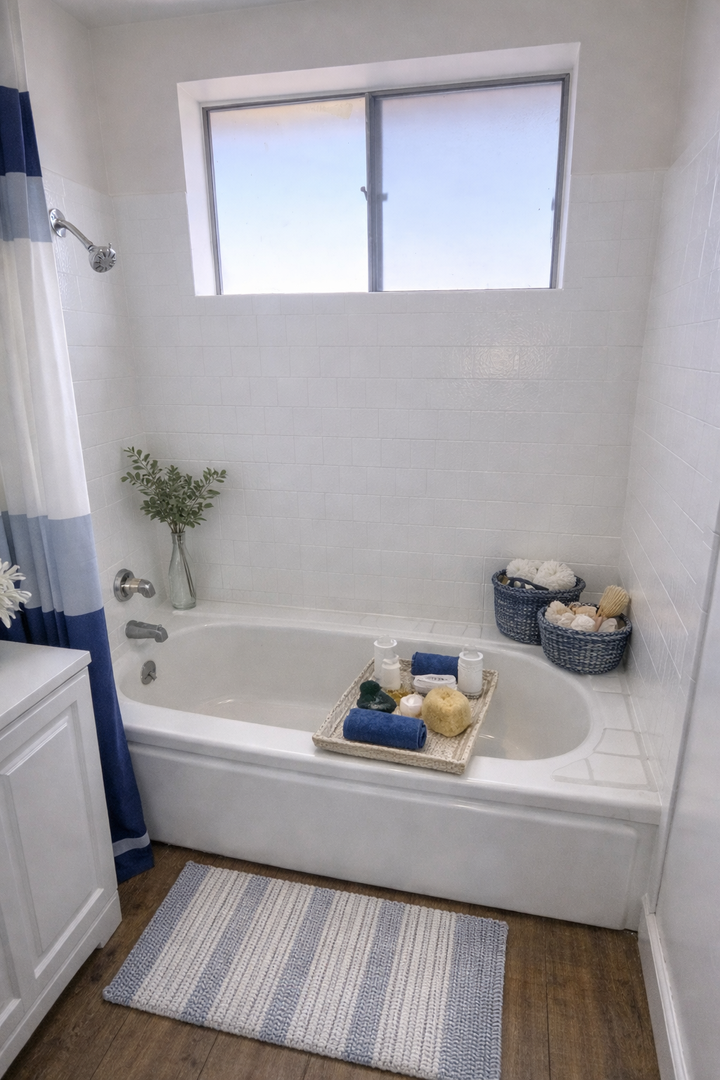 Spacious upstairs extra-large unit located in a gated building, offering comfort and modern upgrades throughout. This beautifully refreshed home features brand-new vinyl click flooring and fresh paint throughout, creating a clean and contemporary feel. The kitchen is equipped with quartz countertops, updated cabinets, a new refrigerator, and a gas stove—perfect for everyday living and cooking. The bathroom has been fully upgraded with a new shower and modern vanity, adding a stylish touch. Additional features include window blinds and screens, a gas wall heater, and convenient onsite laundry.