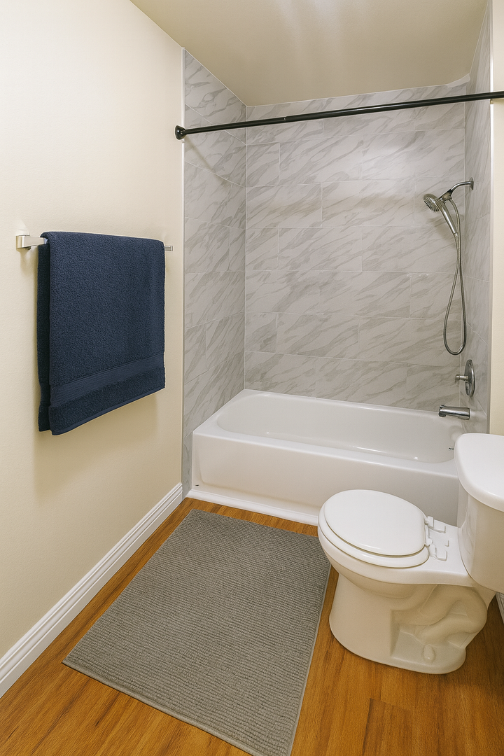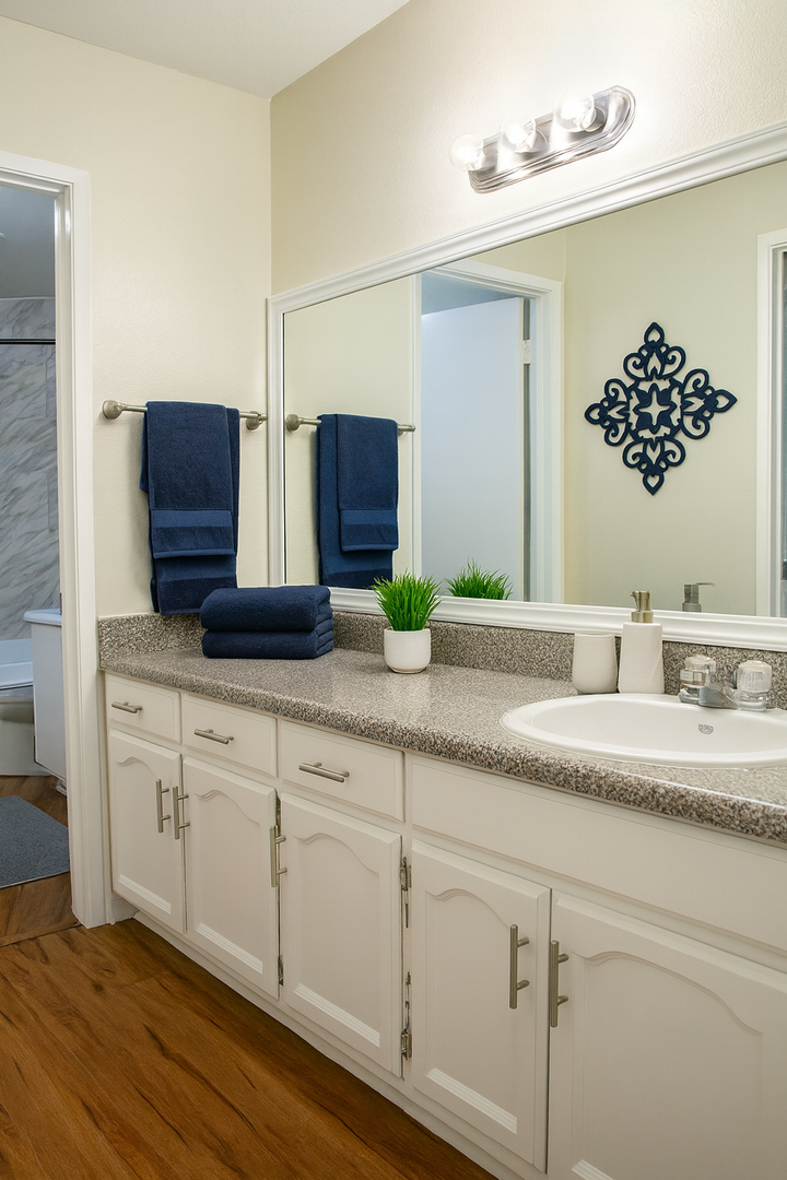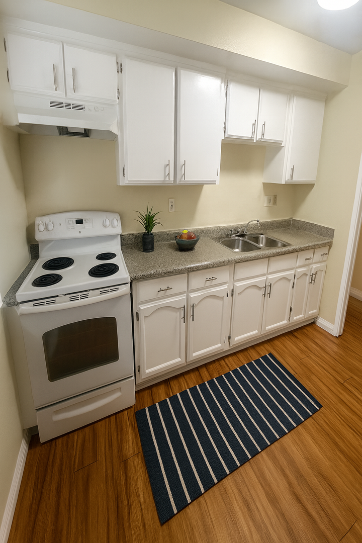 This extra-large downstairs 1 bedroom, 1 bathroom apartment offers comfort, convenience, and plenty of space in a gated building with an onsite manager. The unit features spacious closets, fresh full two-tone accent paint throughout, and modern finishes that make it feel like home. Enjoy a well-appointed kitchen complete with granite countertops and an electric stove. The interior includes laminate flooring, vinyl click flooring, blinds and window screens, and an electric ceiling heater for year-round comfort. The property also provides onsite laundry for added convenience. Don’t miss out on this beautifully updated and generously sized unit—contact us today for more details!
