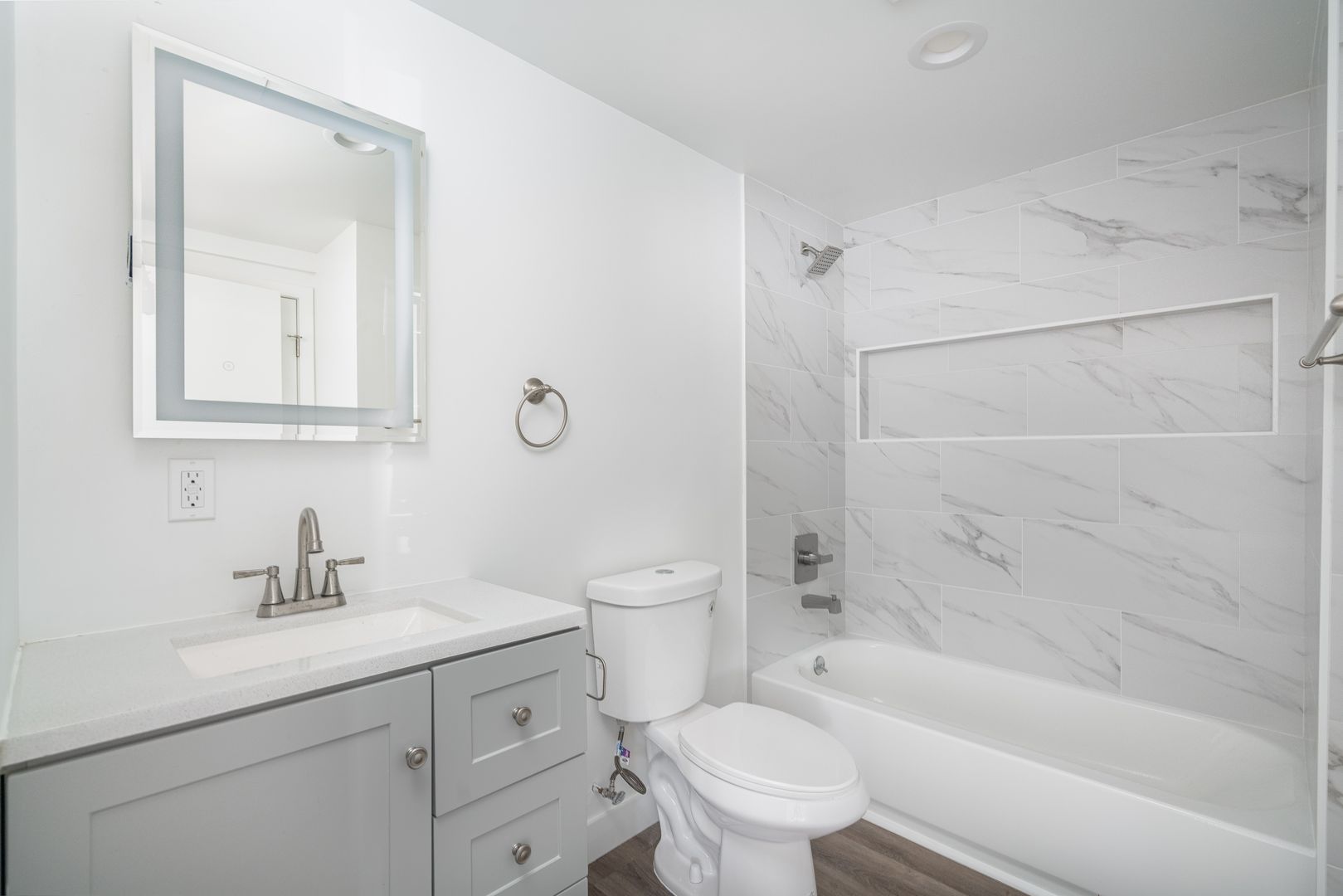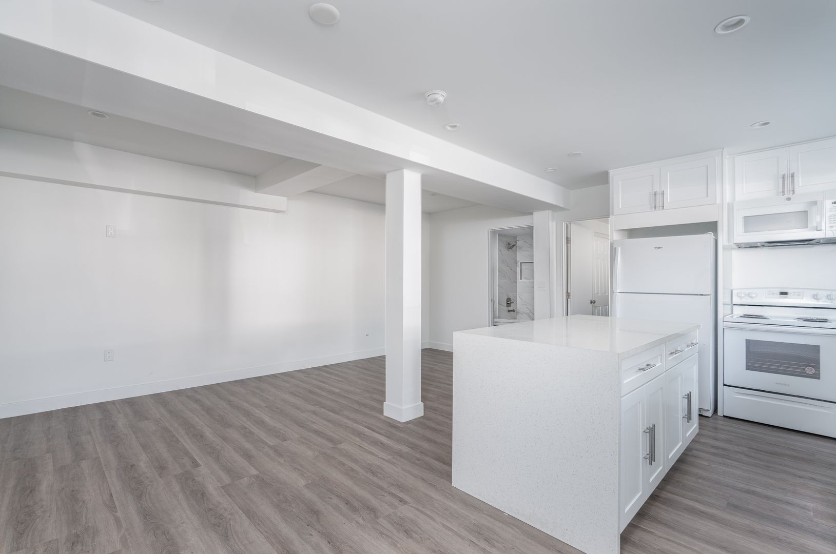 Welcome to this beautiful downstairs 1 bedroom, 1 bathroom apartment in a newer 2024 build, offering a modern design and comfortable living space. Featuring fresh two-tone paint and durable vinyl click flooring throughout, this home provides a clean and contemporary feel. The upgraded kitchen includes quartz countertops, modern kitchen cabinets, a refrigerator, and an electric stove, creating a functional and stylish area for everyday cooking. The unit also offers window blinds and screens, an electric wall heater, and a wall AC unit for year-round comfort. Enjoy the added benefit of a patio space, along with a reglazed bathtub, updated bath vanity, and washer/dryer hookups for convenience. Pets 20 lbs and under are welcomed with a $500 pet deposit and a monthly pet rent of $50, making this a great option for pet owners. This newer and well-maintained home is a wonderful opportunity for comfortable, modern living.