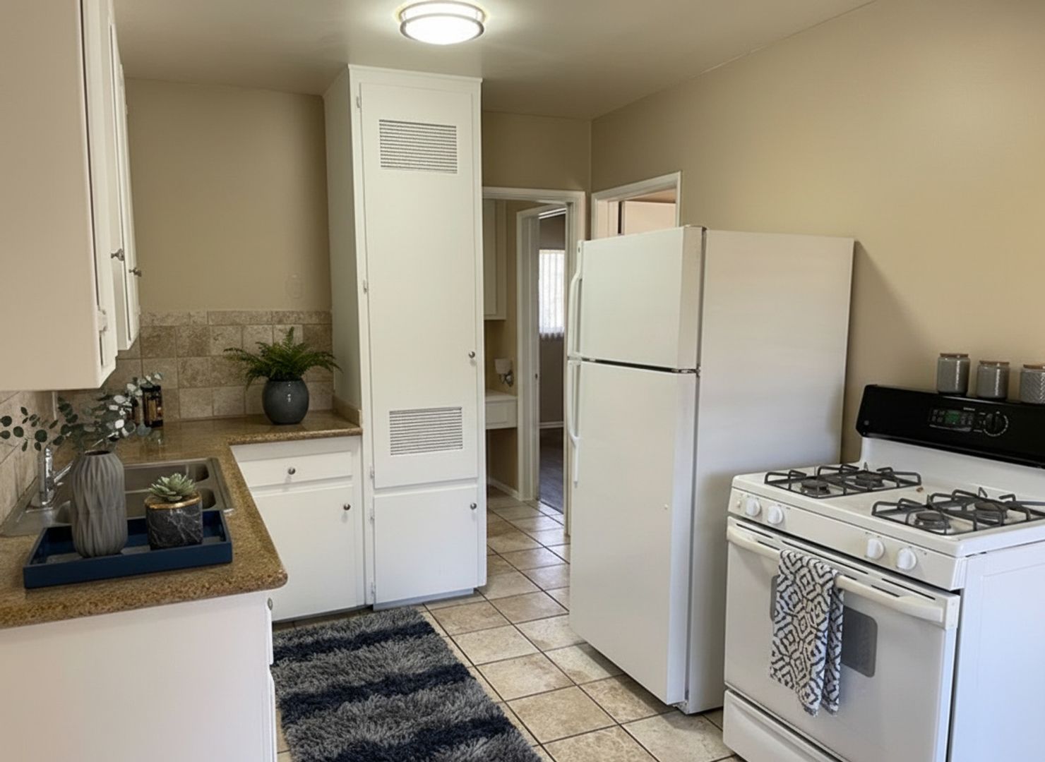 Welcome to your new home in Bellflower, CA! This charming, pet-friendly 1-bedroom, 1-bathroom apartment is located within a gated building. The unit is situated on the ground floor for easy access and comes with a dedicated parking space. Inside, you'll find a gas stove and a fridge in the kitchen, complemented by new quartz countertops and ceramic flooring. The living room and bedroom boast stylish vinyl click flooring, and the bathroom features a reglazed tub. The apartment is equipped with a gas wall heater, ceiling fan, and blinds/window screens for your comfort. An onsite laundry facility adds convenience to your daily routine. We welcome pets under 30lbs with a deposit of $400 and a monthly rent of $65. Come and experience comfortable living in this delightful apartment!