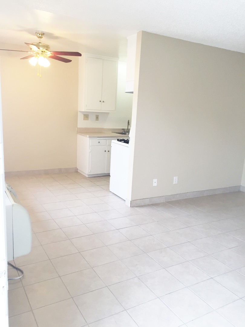 Coming soon! This spacious 1-bedroom, 1-bathroom downstairs unit offers comfort and style in a gated building. Enjoy fresh two-tone paint, ceramic flooring, and custom kitchen cabinets with new quartz countertops. The home features ceiling fans, a wall AC, gas stove, and ample storage space. Residents have access to common recreational areas, onsite laundry, and an attentive onsite manager. One assigned parking space is included for your convenience.