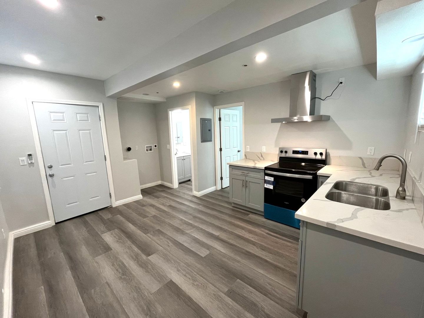 Welcome to your dream living space in Long Beach, CA! This BRAND NEW GORGEOUS 1 BEDROOM | 1 BATH apartment is a stunning blend of style and comfort. The unit is located downstairs and boasts a range of new features including a bath vanity, kitchen cabinets, quartz countertops, and a shower. The kitchen is equipped with a fridge and an electric stove, and features new ceramic flooring. The living room and bedroom are adorned with vinyl click flooring and fresh, full two-toned paint throughout, creating a modern and inviting atmosphere. The apartment is also fitted with an electric wall heater and wall AC for your comfort. For your convenience, the unit is equipped for a washer/dryer hookup. The apartment is a brand new ADU and comes with 2-inch blinds in the living room and bedroom for added privacy. Please note, this is a no smoking and no pets property. As a special welcome, enjoy your first month rent-free! This apartment is a perfect blend of comfort and style, waiting for you to make it your own.