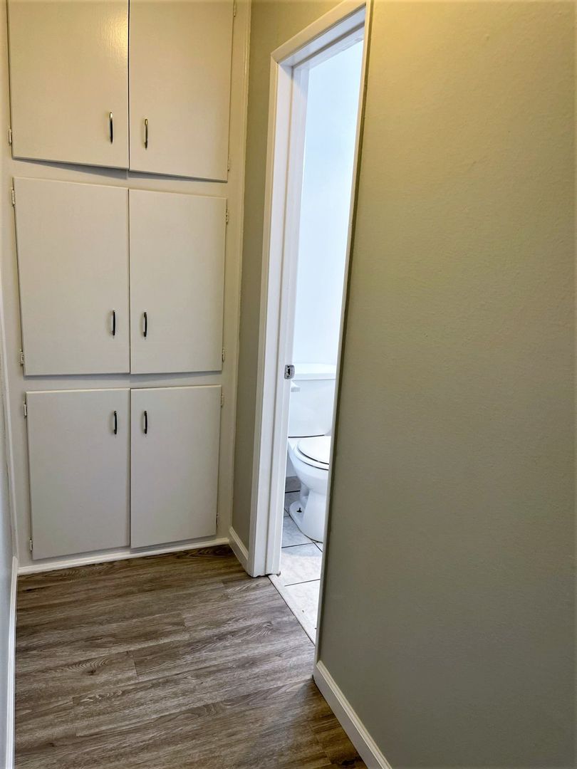 Coming soon! Don’t miss this spacious upstairs 1 bed, 1 bath located in a gated building. This well-maintained unit features vinyl click flooring, ceramic tile, and granite countertops for a modern touch. Enjoy a ceiling fan, gas stove, and refrigerator, along with added storage space for convenience. Community amenities include on-site laundry and an on-site manager. A single-car garage is available for an additional $100/month.