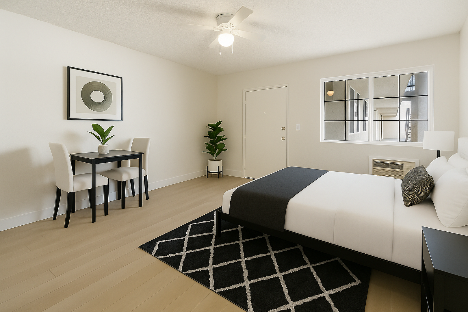 Welcome to Vista Shores, where newly renovated studio apartments meet the relaxed charm of coastal Southern California. Enjoy clean, modern interiors with vinyl flooring, air conditioning, and essential appliances designed for comfort and convenience.