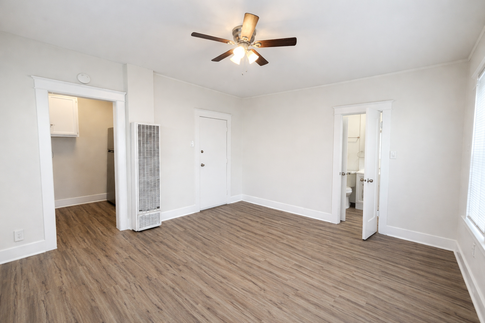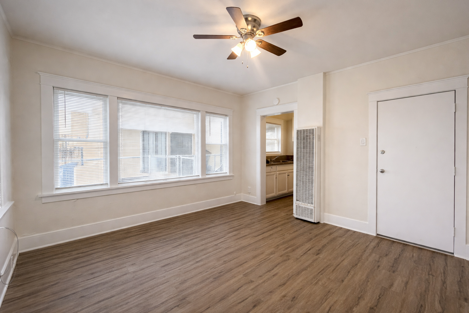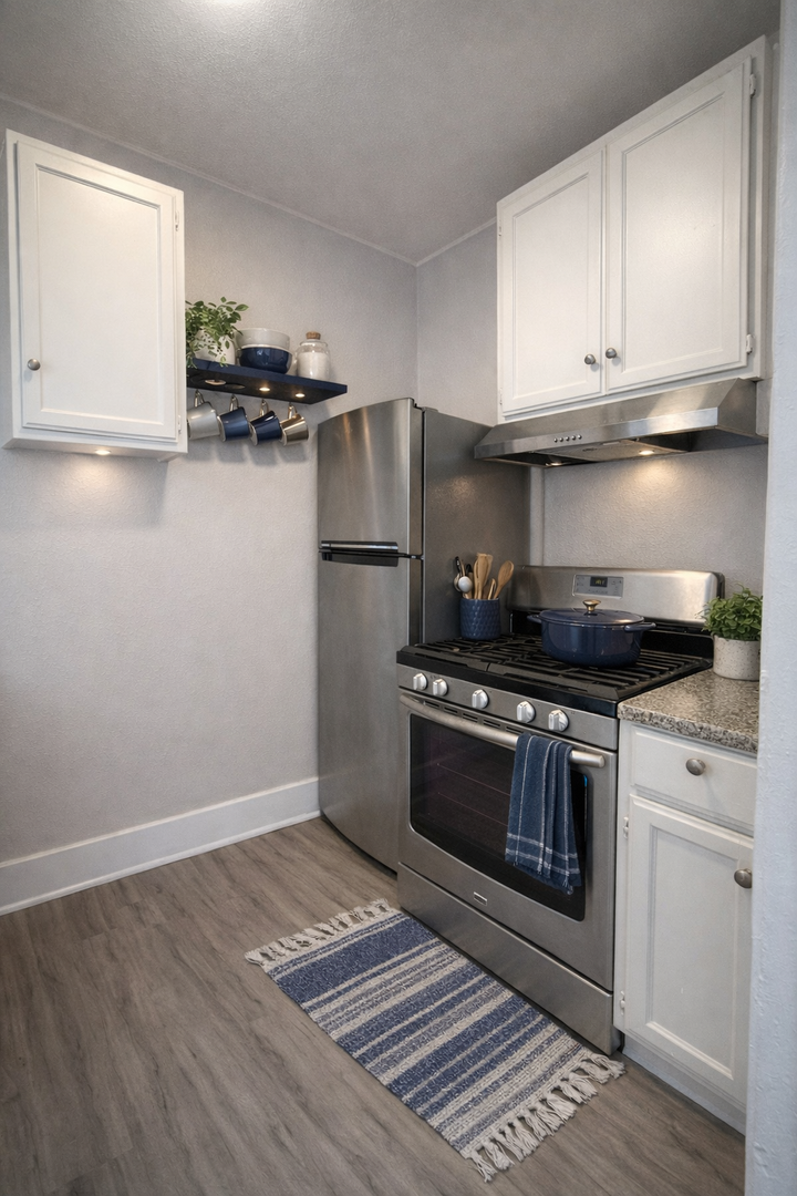 Welcome to this inviting studio, 1-bath downstairs unit located in a gated building, offering comfort and convenience. This well-maintained space features granite countertops, a gas stove, refrigerator, and ample kitchen cabinetry. Enjoy stylish finishes including two-tone paint throughout, window blinds/screens, and a ceiling fan for added comfort. The unit also offers a spacious closet for storage and a reglazed tub that gives the bathroom a fresh, clean look. A gas wall heater provides reliable warmth. Perfect for simple, comfortable living in a secure setting—don’t miss out on this great opportunity!