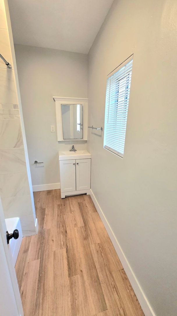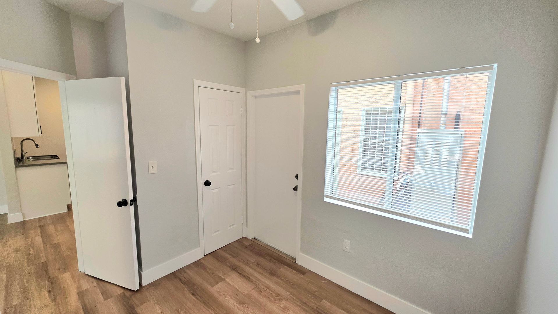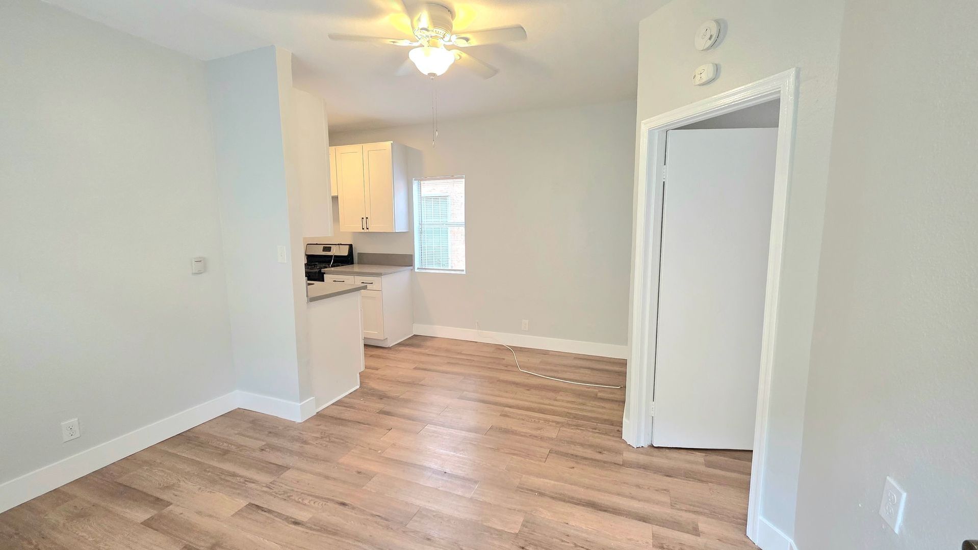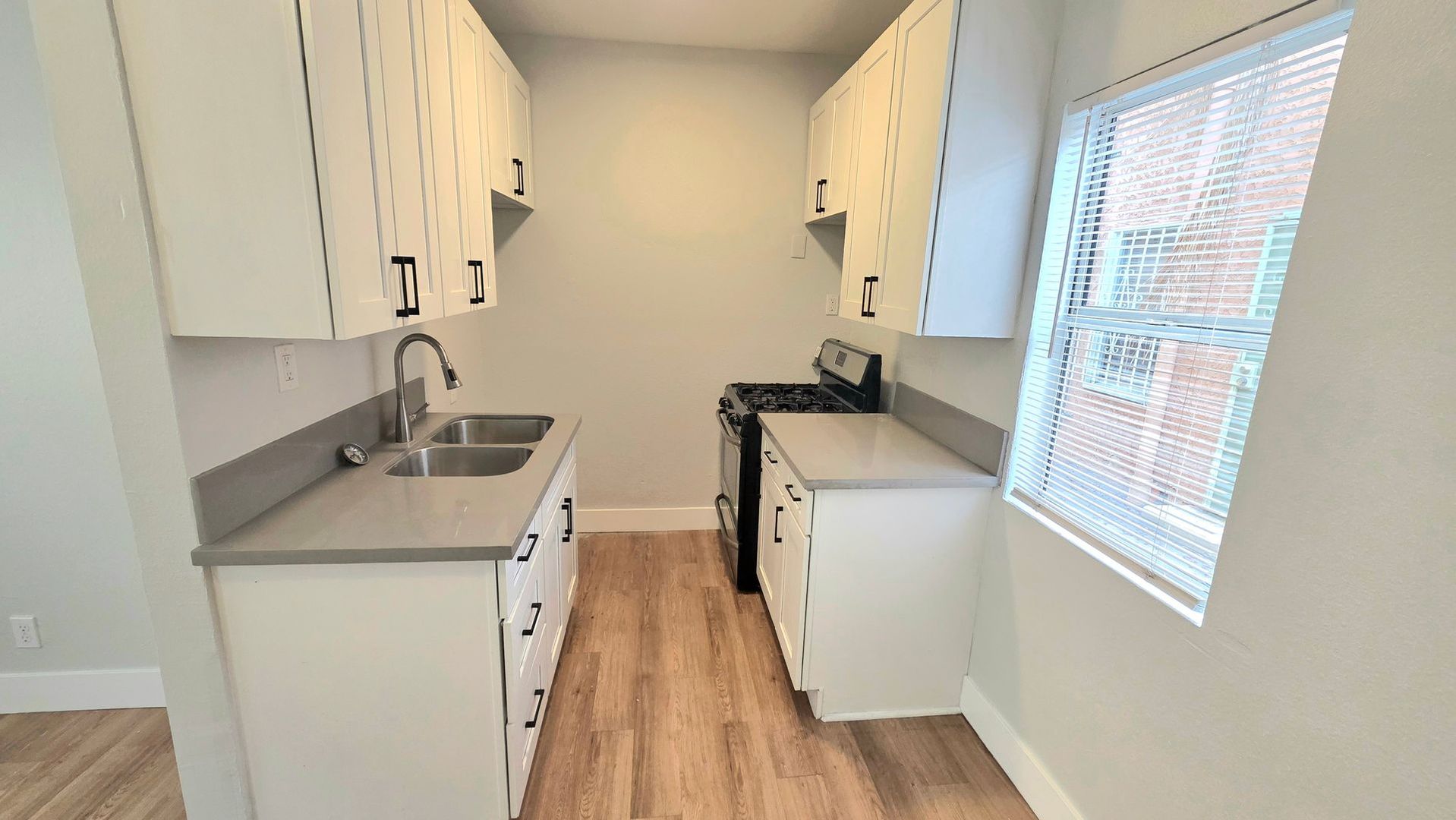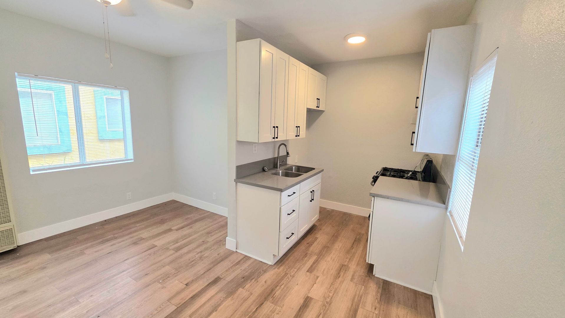 Experience the charm of Long Beach, CA in this delightful 1-bedroom, 1-bathroom apartment located within a gated building. This downstairs unit boasts a host of modern amenities including a gas stove, quartz countertops, and a bath vanity. The kitchen is equipped with ample cabinets, and the entire apartment features vinyl click flooring and a fresh, full two-tone paint job. The apartment also includes blinds and window screens for your privacy, and a ceiling fan for your comfort. The building offers the convenience of onsite laundry facilities. Please note, this is a no-smoking property. Pet lovers will be pleased to know that pets weighing under 25lbs are welcome with a $300 pet deposit and a monthly pet rent of $45. Experience the perfect blend of comfort and convenience in this charming 1-bedroom apartment.