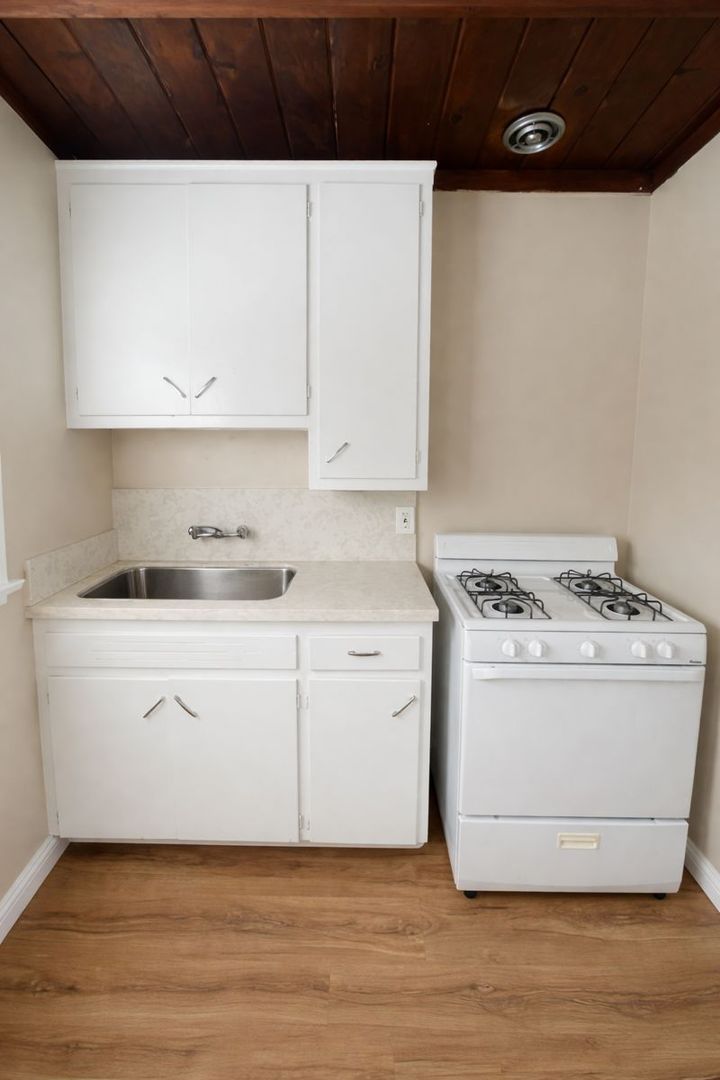 Experience the charm of coastal living in Long Beach, CA with our stunning studio apartment. This downstairs unit boasts a sleek, modern design with vinyl click flooring throughout and fresh, full two-toned paint. The kitchen is a chef's dream, equipped with a gas stove and beautiful quartz countertops. Stay warm during the cooler months with the gas wall heater. The apartment also includes one full bathroom, outfitted with all the essentials. One parking space is included, adding convenience to your daily routine. Please note, this is a no smoking and no pets property. The apartment also features blind windows screens for added privacy. Come and enjoy the vibrant lifestyle of Long Beach in this stylish studio apartment.
